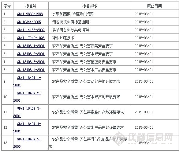 國標委廢止13項國家標準