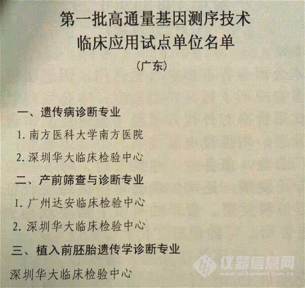 第一批高通量基因測(cè)序技術(shù)臨床應(yīng)用試點(diǎn)單位名單(廣東),網(wǎng)絡(luò)截圖