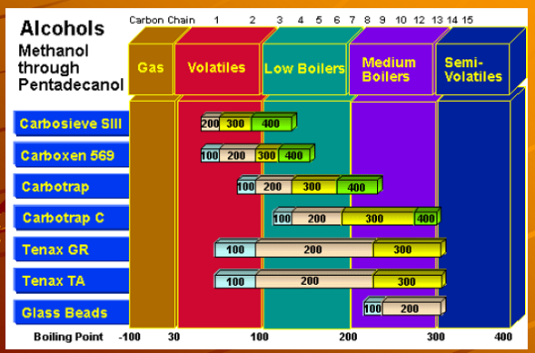 圖 9 吸附劑適合適用于各類化合物及溫度