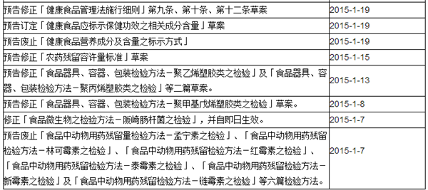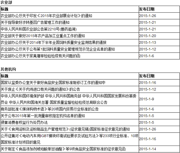 2015年1月發(fā)布的食品相關(guān)法規(guī)匯總