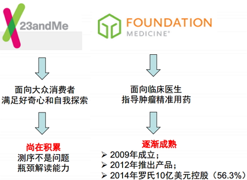 隨著檢測(cè)樣本的增加和指導(dǎo)用藥數(shù)據(jù)的積累,提供的治療方案會(huì)越來越精準(zhǔn),也就是說大數(shù)據(jù)的積累會(huì)從量變引起質(zhì)變,數(shù)據(jù)具備進(jìn)化性,走向精準(zhǔn)治療,她認(rèn)為以二代基因測(cè)序技術(shù)為基礎(chǔ)面向臨床醫(yī)生指導(dǎo)腫瘤精準(zhǔn)用藥的FMI商業(yè)模式逐漸成熟。此外,羅氏與FMI合作投入超過1.5億美金用于研發(fā)——在基因測(cè)序指導(dǎo)藥物研發(fā)占得先機(jī)!