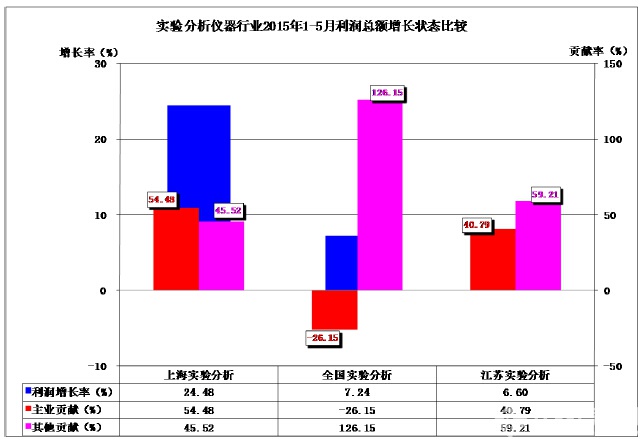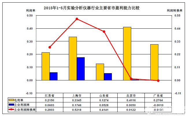 3、2015年1-5月實(shí)驗(yàn)分析儀器行業(yè)主要省市盈利能力比較