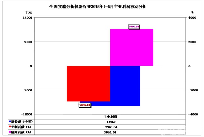 圖2、全國(guó)實(shí)驗(yàn)分析儀器行業(yè)2015年1-5月主業(yè)利潤(rùn)波動(dòng)分析