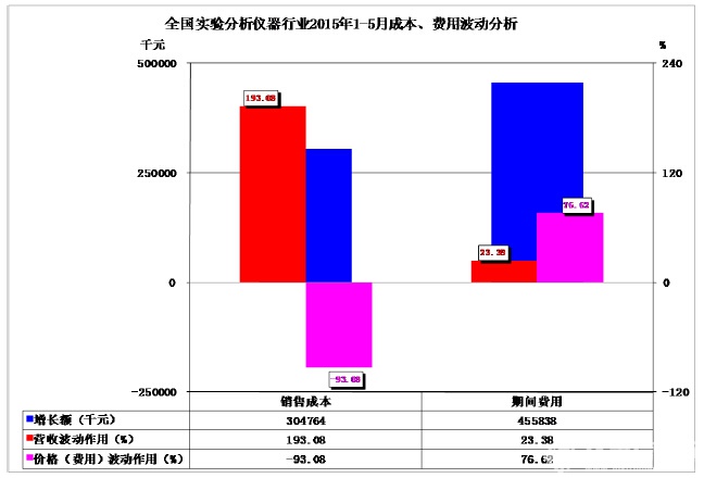 圖3、全國(guó)實(shí)驗(yàn)分析儀器行業(yè)2015年1-5月成本、費(fèi)用波動(dòng)分析