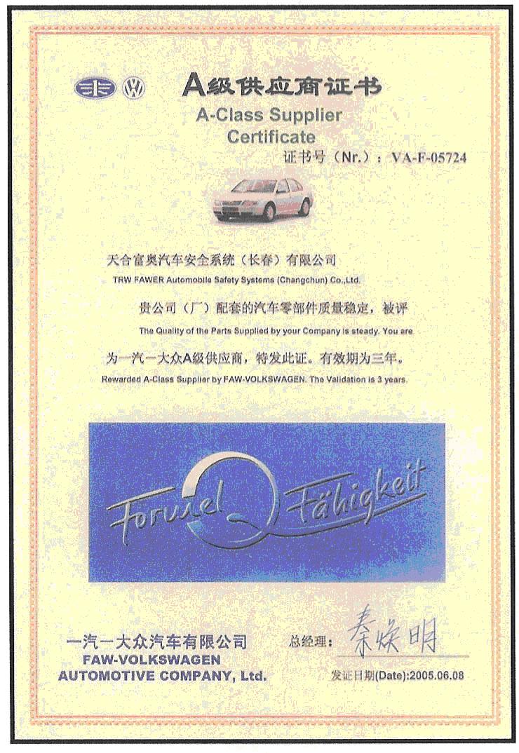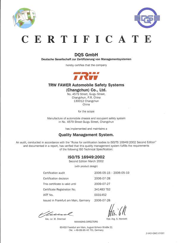 天合富奧汽車安全系統(tǒng)(長春)有限公司是由美國天合汽車(TRW)公司和一汽富奧汽車零部件股份有限公司于1995年10月合資興建的中外合資企業(yè),總投資為31416萬元,中美雙方投資比例分別為:美國天合60% 富奧40% 。 公司坐落于長春市西南部的高新技術(shù)開發(fā)區(qū),占地面積50000平方米,建筑面積17800平方米,現(xiàn)有1200余名員工,在沈陽、成都設(shè)有兩家分公司,是國內(nèi)規(guī)模較大的現(xiàn)代化汽車零部件生產(chǎn)基地之一。 公司通過VDA6.1、TS16949、ISO14001、OHSAS18001等質(zhì)量、安全、健康、環(huán)境體系認證。 公司產(chǎn)品包括底盤和安全系統(tǒng)兩大系列,主要產(chǎn)品有制動盤、制動鼓、后輪轂軸和前輪轂、停車制動總成、制動鉗總成、前后轉(zhuǎn)向節(jié)總成、前后滑柱總成、后軸總成、副車架總成、手剎車、方向盤、安全氣囊和安全帶。 公司現(xiàn)已形成了年產(chǎn)200萬輛汽車底盤和制動系統(tǒng)總成、250萬套方向盤和230萬套安全氣囊的生產(chǎn)能力,是國家級高新技術(shù)企業(yè),吉林省重點企業(yè)。 公司主要客戶包括: 一汽轎車、一汽大眾、一汽豐田、上汽集團、上海大眾、北京奔馳、華晨寶馬、華晨,南京福特、重慶福特、沃爾沃、廣汽、廣汽菲亞特、奇瑞等18家客戶。 天合富奧汽車安全系統(tǒng)(長春)有限公司將一直奉行積極創(chuàng)新、銳意進取、持續(xù)發(fā)展、不斷超越的理念,為中國汽車工業(yè)的發(fā)展做出貢獻。
