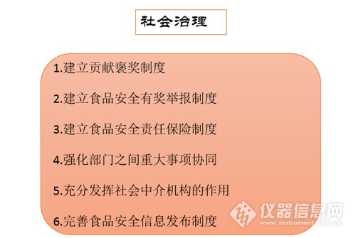 陳谞談到,新《食品安全法》在社會(huì)治理方面的創(chuàng)新主要有建立了貢獻(xiàn)褒獎(jiǎng)制度、食品安全有獎(jiǎng)舉報(bào)制度、責(zé)任保險(xiǎn)制度,此外還強(qiáng)化了部門(mén)之間重大事項(xiàng)協(xié)同、發(fā)揮社會(huì)中介機(jī)構(gòu)的作用、并完善了食品安全信息發(fā)布制度。