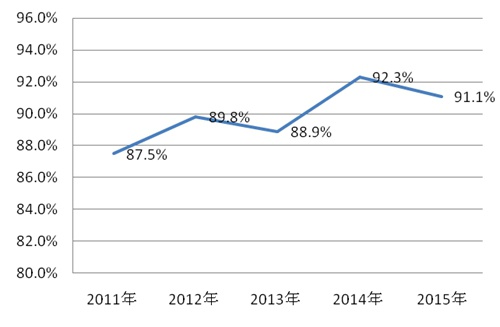 近5年國家監(jiān)督抽查產(chǎn)品抽樣合格率