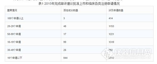 2015年完成審評建議批準上市和批準臨床的情況見表1(不包括補充申請和進口再注冊)。