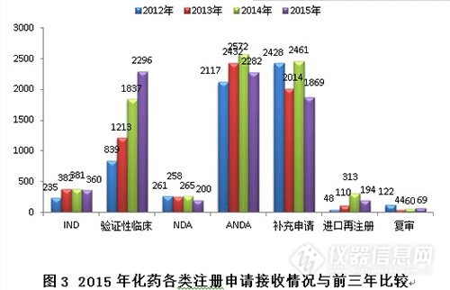 2015年,藥審中心全年接收新注冊申請8211個(以受理號計,下同)。與既往年度接收注冊申請的比較情況見圖1。