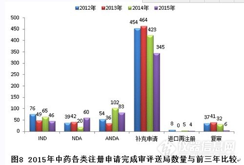 各類注冊申請完成審評情況與前三年比較見下圖: