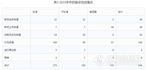 (二) 2015年中藥受理和審評情況