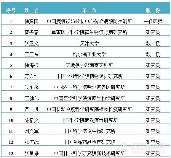 “生物安全關(guān)鍵技術(shù)研發(fā)”重點(diǎn)專項2016年項目指南編制專家名單