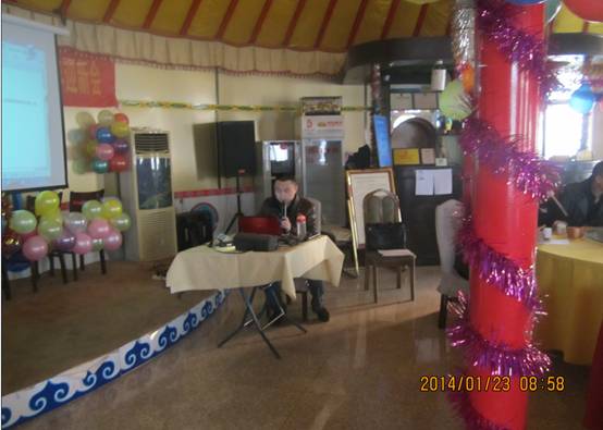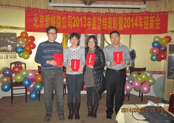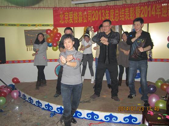 二零一四馬年到,萬馬奔騰景壯觀。2014年1月23日至24日,愛格森公司2013年度總結(jié)表彰暨2014年迎新會在北京莎日娜蒙古風(fēng)情生態(tài)觀光園隆重舉行。公司全體員工與各級領(lǐng)導(dǎo)歡聚一堂。年會現(xiàn)場充滿了激情、熱烈、活躍的氣氛。首先愛格森總經(jīng)理致辭,向一年中為公司做出杰出貢獻的全體員工致以新春的問候和美好的祝福;隨后各部門人員分別做年終總結(jié)與計劃;最后由副總經(jīng)理對2013年度工作做出整體匯報,并對2014年工作做出重要部署和規(guī)劃。