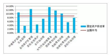 圖72015年環(huán)境服務(wù)細(xì)分領(lǐng)域企業(yè)固定資產(chǎn)折舊率(數(shù)據(jù)來(lái)源:2015年度環(huán)境服務(wù)業(yè)財(cái)務(wù)統(tǒng)計(jì)調(diào)查)