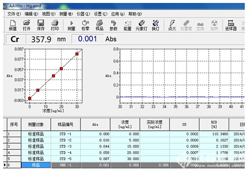 消解完成的樣品經(jīng)過(guò)稀釋定容可以用原子吸收來(lái)測(cè)試其中的重金屬。經(jīng)過(guò)測(cè)試,本次消解的樣品鉻含量為0.06mg/kg,在國(guó)標(biāo)要求的2mg/kg的范圍內(nèi)。