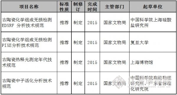 日前,國(guó)家標(biāo)準(zhǔn)委發(fā)布了2014年第一批國(guó)家標(biāo)準(zhǔn)制修訂計(jì)劃的通知。其中提出將制定四項(xiàng)針對(duì)古陶瓷鑒定的新國(guó)標(biāo)。