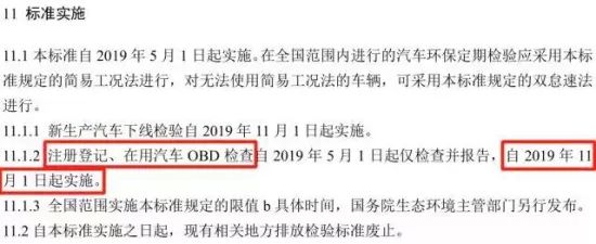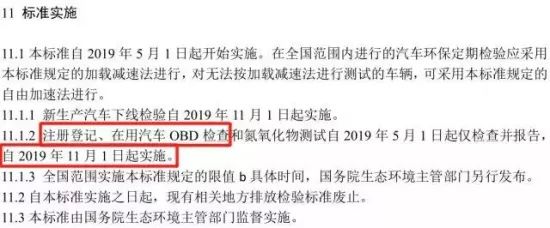 新標(biāo)準(zhǔn)由于修訂內(nèi)容較多,增加了OBD檢測等新內(nèi)容,因此標(biāo)準(zhǔn)實(shí)施采取分步走方式。