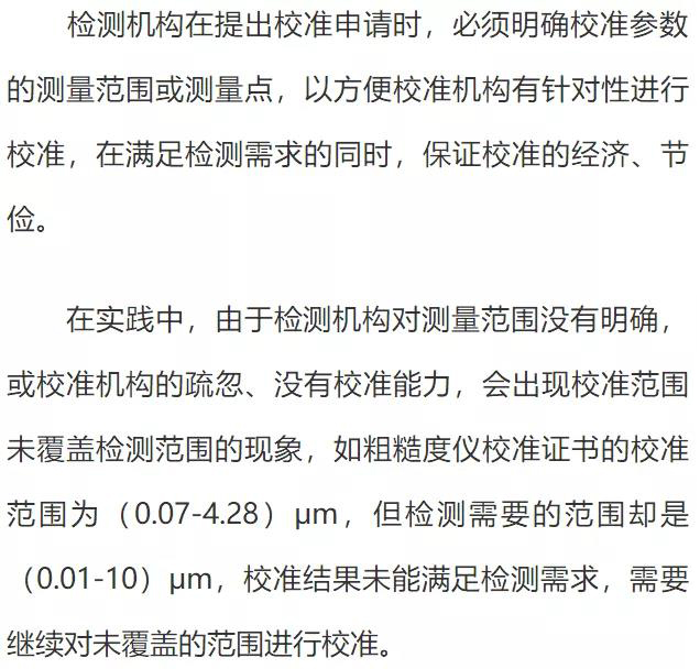 2.2.3 對(duì)檢測(cè)機(jī)構(gòu)申請(qǐng)的測(cè)量范圍或測(cè)量點(diǎn)的校準(zhǔn)確認(rèn)