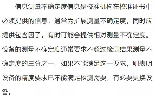 有時(shí)還可以從產(chǎn)品標(biāo)準(zhǔn)中規(guī)定的極限值等要求中獲取。這是開(kāi)展校準(zhǔn)結(jié)果確認(rèn)的關(guān)鍵環(huán)節(jié)。許多檢測(cè)人員往往是不會(huì)識(shí)別或難于識(shí)別設(shè)備的預(yù)期使用要求而使這一工作沒(méi)能做到位。