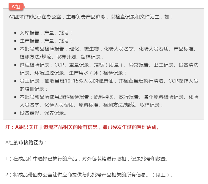 在倉(cāng)庫(kù)參觀的時(shí)候,可以看看到貨和發(fā)貨的情況,在庫(kù)房?jī)?nèi)可以找一個(gè)1周左右的產(chǎn)品做追溯演練。在現(xiàn)場(chǎng)走一圈也可以順便檢查了蟲害管理設(shè)施。