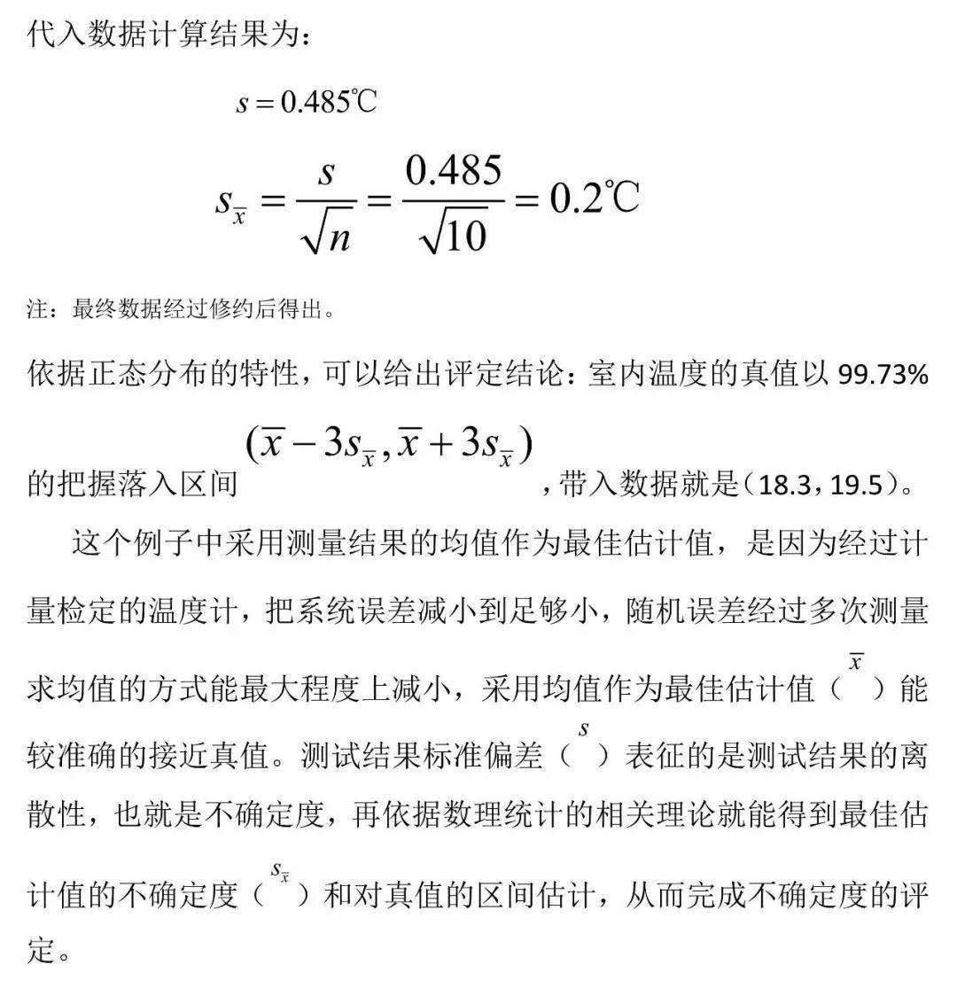 我們這么回答的目的是什么呢?我們這么回答的目的就是,盡可能準確的給出室內(nèi)溫度的估計值,然后再依據(jù)經(jīng)驗確定和分析結(jié)果關(guān)聯(lián)的范圍,使估計值結(jié)合這個范圍以最大的把握性包含室內(nèi)溫度的準確值,或者說真值。