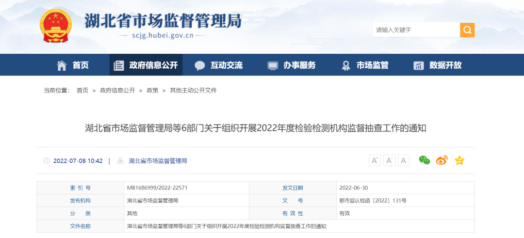(三)加強(qiáng)信息報送。市場監(jiān)管部門應(yīng)及時匯總各聯(lián)合監(jiān)管部門的現(xiàn)場檢查、核實(shí)確認(rèn)、調(diào)查處理情況。省級監(jiān)督抽查應(yīng)于9月24日前完成,并通過“湖北省檢驗(yàn)檢測行政監(jiān)督管理信息系統(tǒng)”上報檢查結(jié)果。各市州市場監(jiān)管局應(yīng)于11月底前完成此次抽查工作總結(jié),并報送省市場監(jiān)管局認(rèn)檢處。