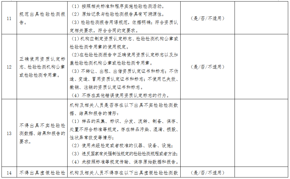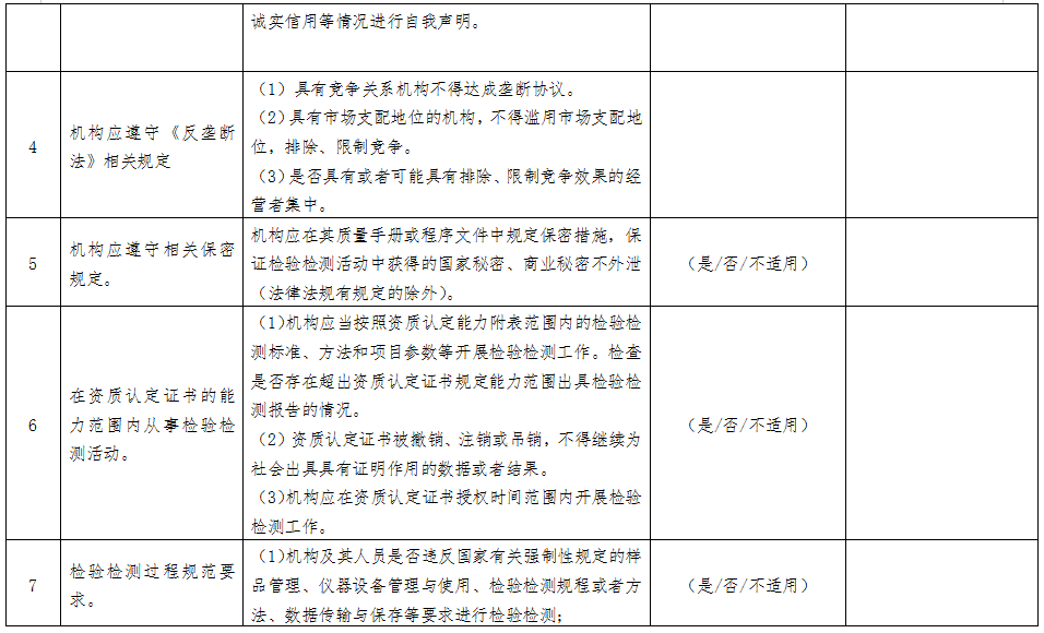 檢驗(yàn)檢測(cè)機(jī)構(gòu)要認(rèn)真落實(shí)主體責(zé)任,扎實(shí)開(kāi)展自查自糾,深入排查風(fēng)險(xiǎn)隱患,系統(tǒng)做好風(fēng)險(xiǎn)分析,并采取針對(duì)性措施有效預(yù)防、規(guī)避和降低風(fēng)險(xiǎn)。自查的重點(diǎn)為:檢驗(yàn)檢測(cè)活動(dòng)是否符合國(guó)家相關(guān)法律法規(guī)的規(guī)定,遵循客觀獨(dú)立、公平公正、誠(chéng)實(shí)信用原則;檢驗(yàn)檢測(cè)數(shù)據(jù)、結(jié)果是否真實(shí)、客觀、準(zhǔn)確;管理體系是否有效運(yùn)行,是否能夠持續(xù)符合資質(zhì)認(rèn)定條件和要求;從事檢驗(yàn)檢測(cè)活動(dòng)所必需的檢驗(yàn)檢測(cè)設(shè)備設(shè)施是否完備;是否遵守反壟斷法等相關(guān)法律規(guī)定,依法合規(guī)開(kāi)展生產(chǎn)經(jīng)營(yíng)等。