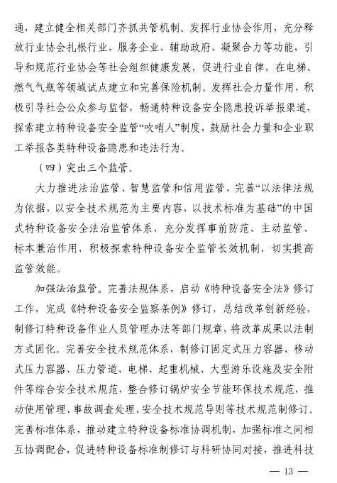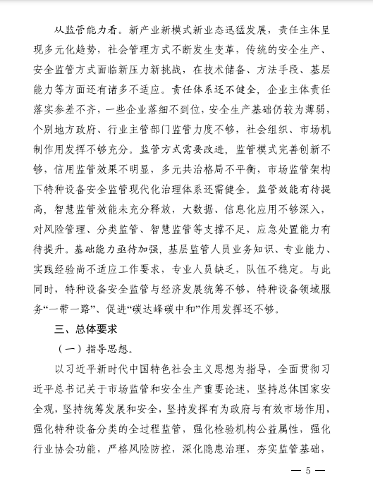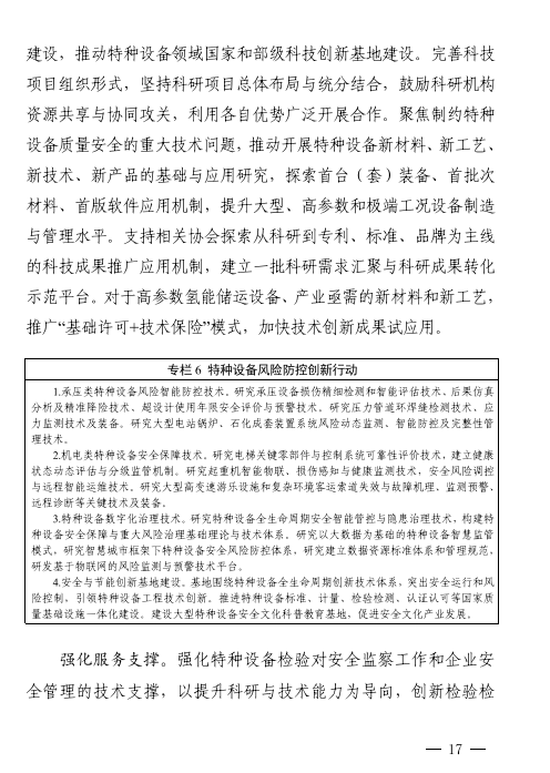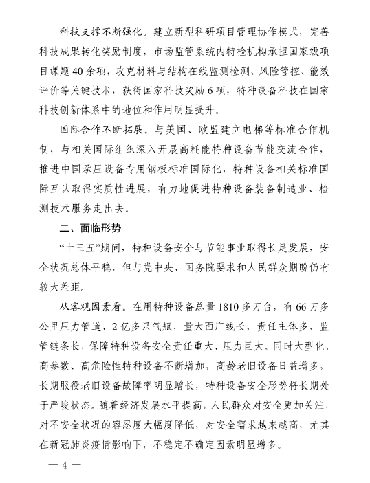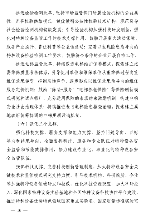 《規(guī)劃》的基本原則提出,積極應(yīng)對(duì)新技術(shù)、新產(chǎn)業(yè)、新業(yè)態(tài)、新模式下特種設(shè)備安全形勢,持續(xù)深化“放管服”改革,強(qiáng)化檢驗(yàn)機(jī)構(gòu)的公益屬性和檢測機(jī)構(gòu)的市場屬性,全面落實(shí)檢驗(yàn)檢測改革措施。加強(qiáng)制度創(chuàng)新與政策集成,促進(jìn)特種設(shè)備全生命周期的產(chǎn)業(yè)鏈和創(chuàng)新鏈深度融合,鼓勵(lì)創(chuàng)新要素向企業(yè)、檢驗(yàn)檢測機(jī)構(gòu)集聚,加快打造原創(chuàng)技術(shù)策源基地,加速科技成果轉(zhuǎn)化應(yīng)用進(jìn)程。
