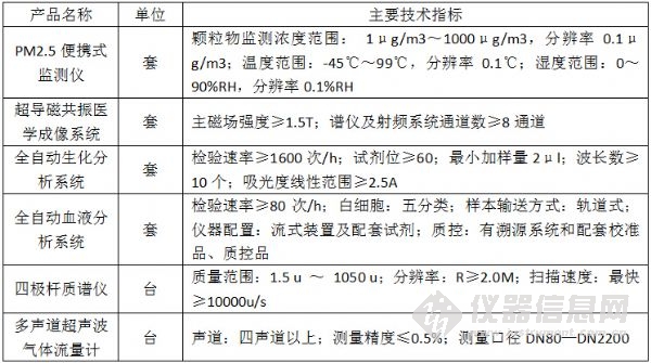 其中與科學儀器相關的包括四極桿質(zhì)譜儀、PM2.5便攜式監(jiān)測儀、超導磁共振醫(yī)學成像系統(tǒng)、全自動生化分析系統(tǒng)、全自動血液分析系統(tǒng)、多聲道超聲波氣體流量計等。具體如下: