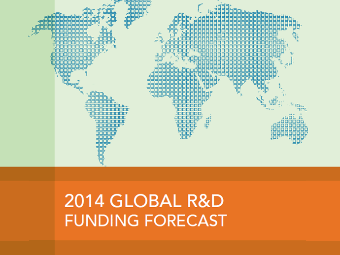 根據(jù)《巴特爾》(Battelle)和《研發(fā)雜志》(R&D Magazine)的分析,2014年,全球研發(fā)支出預(yù)計(jì)增長3.8%(約600億美元),增長至1.6億億美元。經(jīng)歷2013年研發(fā)支出上的平穩(wěn)狀態(tài)之后,估計(jì)美國支出將溫和增長,而預(yù)計(jì)中國在研發(fā)投入上繼續(xù)保持增長勢頭。