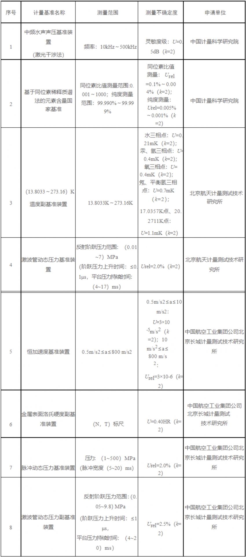 關注|關于擬新建8項國家計量基準和提升1項國家計量基準技術能力的公示