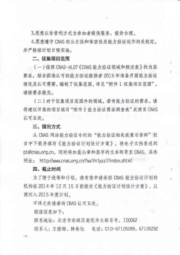 CNAS征集2015年能力驗證計劃通知