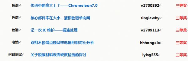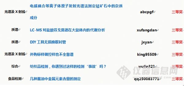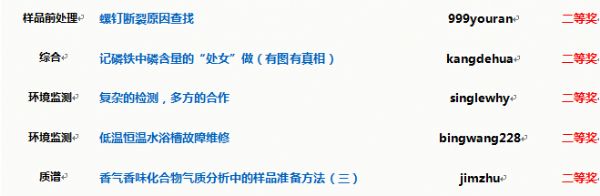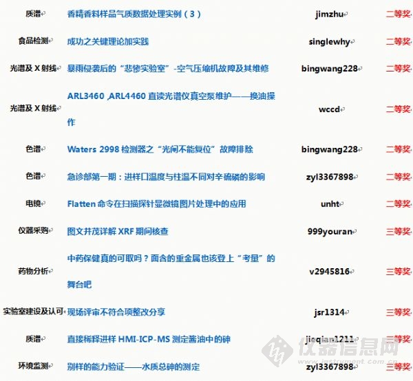 本屆原創(chuàng)大賽設(shè)有12個(gè)分賽區(qū),分別為:質(zhì)譜、色譜、光譜及X射線、樣品前處理、電鏡、材料測(cè)試、食品檢測(cè)、環(huán)境監(jiān)測(cè)、藥物分析、實(shí)驗(yàn)室建設(shè)及認(rèn)可、儀器采購(gòu)、綜合類;征文類型涉及儀器維護(hù)維修、儀器使用經(jīng)驗(yàn)、圖譜解析、分析方法開發(fā)與應(yīng)用、實(shí)驗(yàn)室管理方法與建設(shè)、儀器選型、采購(gòu)交流等多個(gè)方面。歡迎更多的網(wǎng)友們加入進(jìn)來,分享您的經(jīng)驗(yàn)與心得。大賽每月各賽區(qū)會(huì)評(píng)選出月度獲獎(jiǎng)作品,大賽結(jié)束后將從所有參賽作品中評(píng)選出年度優(yōu)秀作品,并發(fā)放證書與禮品進(jìn)行獎(jiǎng)勵(lì)!